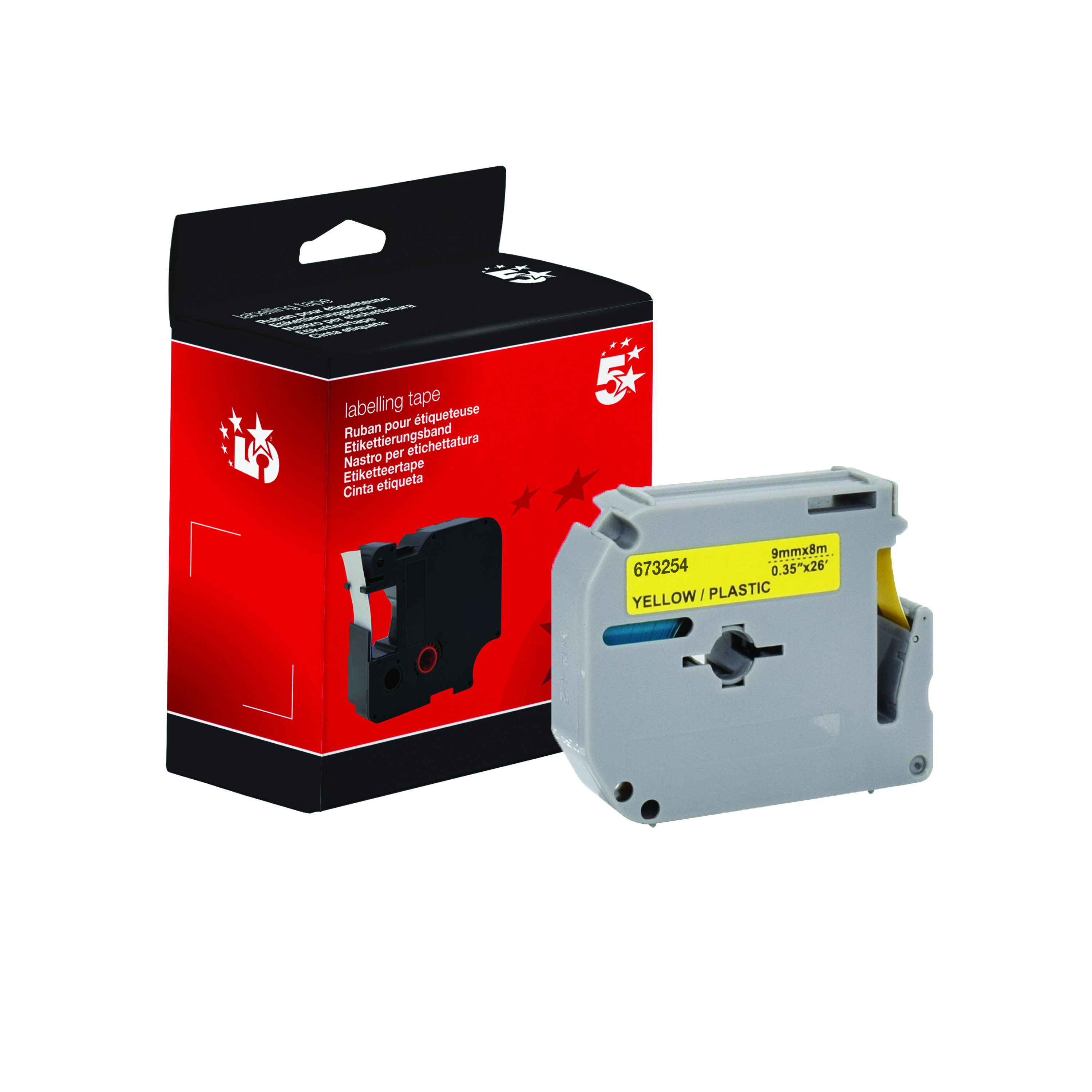 5 Star Non-OEM Replacement for Brother M-K621 Black on Yellow 9mm x 8m FS673254
