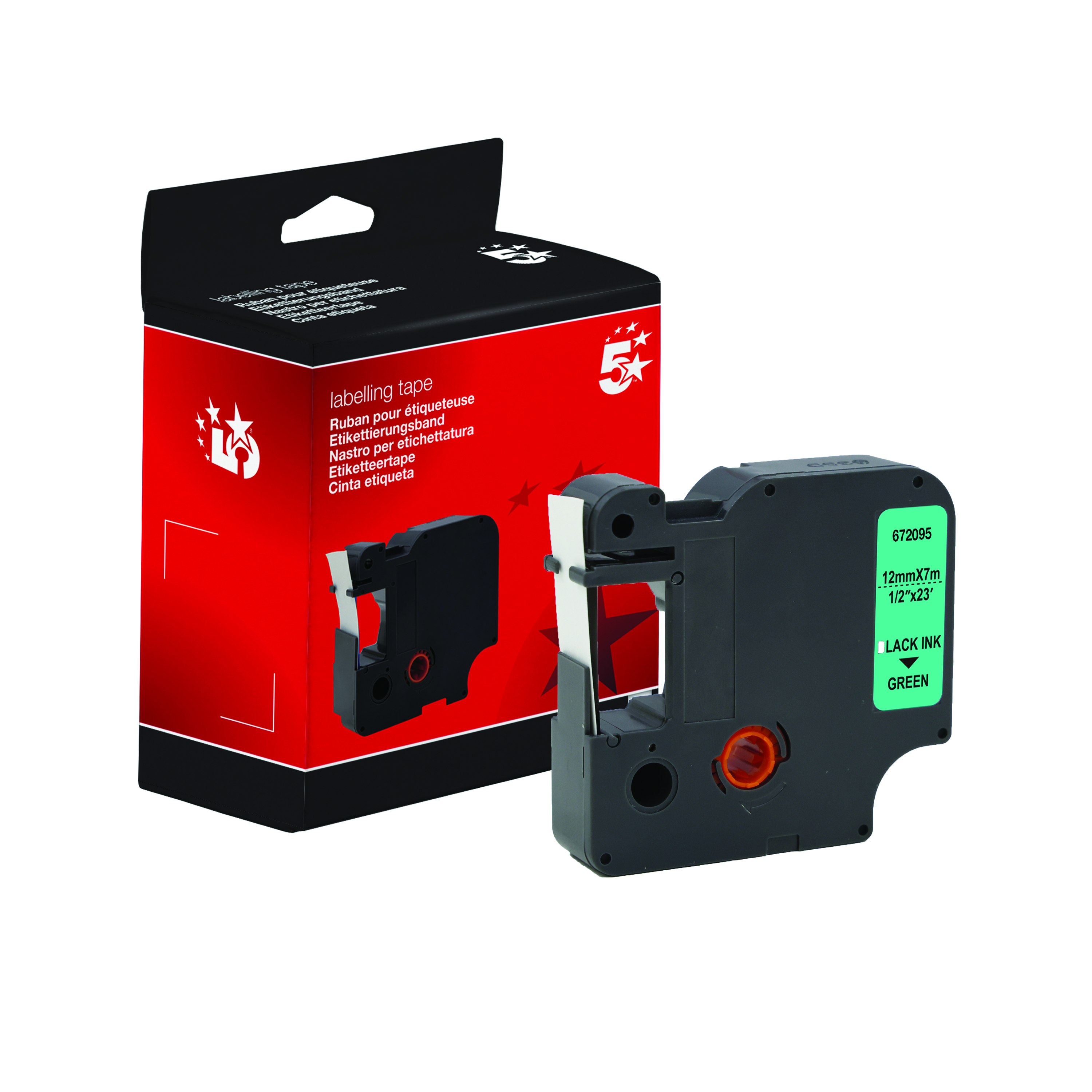 5 Star Non-OEM Replacement for Dymo 45019 Black on Green 12mm x 7m FS672095